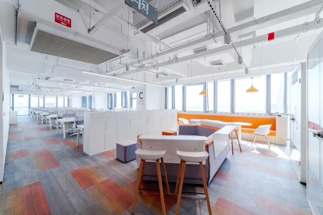 辦公室墻面采用多彩噴繪膜,結合今日頭條公司的企業文化,彰顯創新科技綠色建筑的人文關懷;地面采用膠地板鋪設,會議室等采用降噪的系統玻璃隔斷,給人一種簡潔、高雅、寧靜的感覺。
