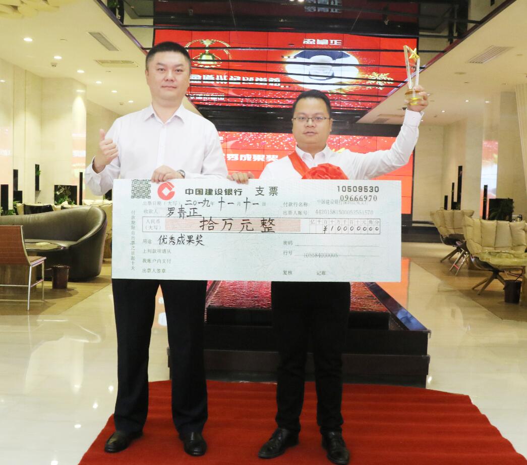 黃河副董事長作為后起之秀,已成為博大新的統帥,帶領鐵軍敢于亮劍、征戰四方,為博大開疆拓土。圖為董事長徐凱宏代表董事會為黃河頒獎。