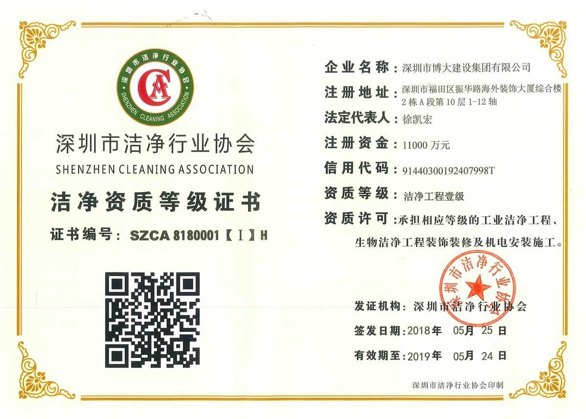 資質 | 博大建設集團獲得潔凈工程壹級資質 | 醫療器械經營許可