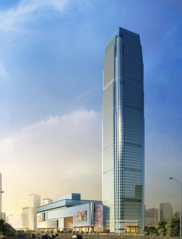 107.1米高度,潮州財富中心位于廣東省潮州市,幕墻面積5.4萬平方米。項目采用了玻璃幕墻、石材幕墻、鋁板幕墻、鋁合金窗、采光頂、膜結構。