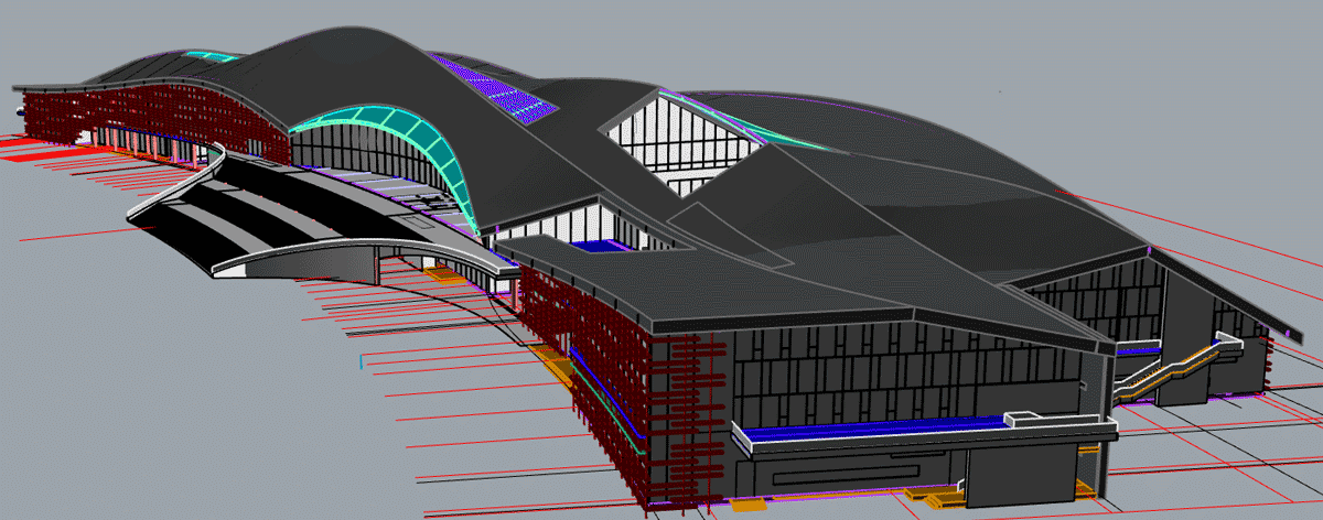 本工程結(jié)構(gòu)設(shè)計(jì)造型較復(fù)雜、幕墻體系層次復(fù)雜,博大配備高素質(zhì)的幕墻深化設(shè)計(jì)團(tuán)隊(duì),應(yīng)用三維建模及BIM管理平臺(tái)進(jìn)行幕墻系統(tǒng)空間碰撞檢測,全力保證施工質(zhì)量和效率。