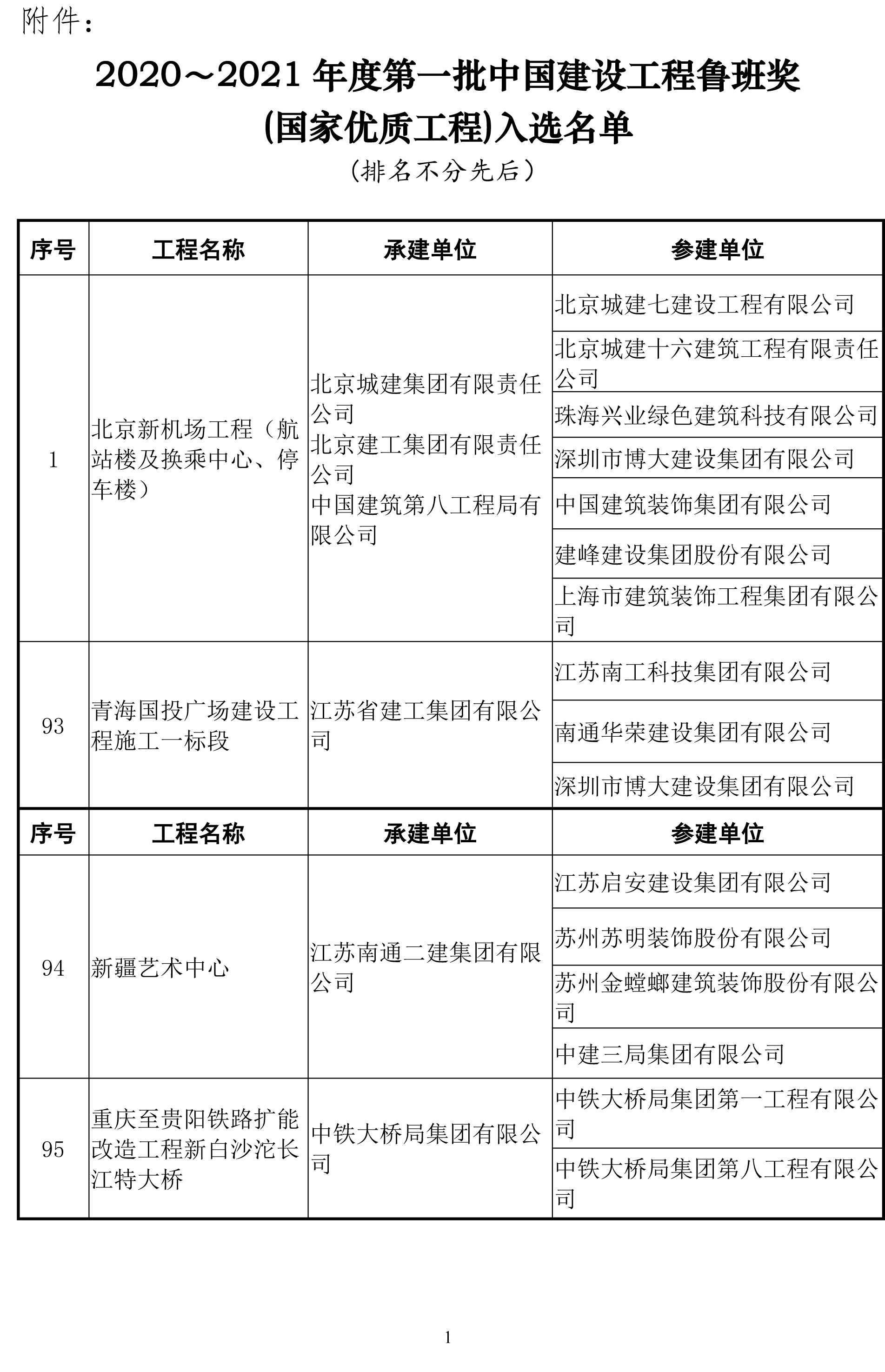 11月30日,根據中國建筑業協會的公示文件,2020~2021年度第一批中國建設工程魯班獎(國家優質工程)申報、復查、評審、審定工作已結束,博大建設集團參建的北京大興國際機場、青海國投廣場兩個項目榮獲國家建筑行業工程質量最高榮譽——中國建設工程魯班獎(國家優質工程)。
