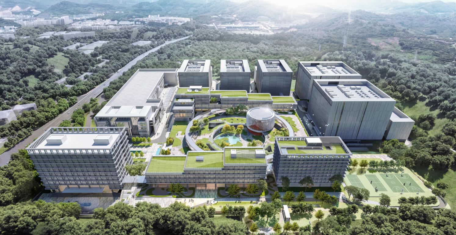 項目位于東莞市東深二路鳳德嶺段2號,包含5棟數據中心、1棟研發樓、1棟辦公樓、1棟宿舍樓、廠房和環形連廊等。主要幕墻系統包含石材幕墻系統、陶板幕墻系統、鋁板幕墻系統、首層挑高豎明橫隱玻璃幕墻系統、凹凸豎明橫隱玻璃幕墻系統、折線鋁板幕墻系統、圓環陽極氧化鋁板幕墻系統、ECC豎明橫隱玻璃幕墻系統等。