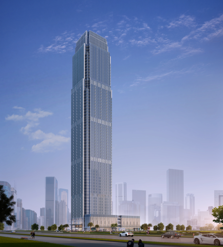 金港中心為超高層建筑,建筑高度達(dá)到271米,地上70層,是防城港市最高樓。主要幕墻系統(tǒng)為玻璃幕墻、陶板幕墻、鋁板幕墻、雨棚、百葉、門(mén)窗等,幕墻總面積約60000㎡。