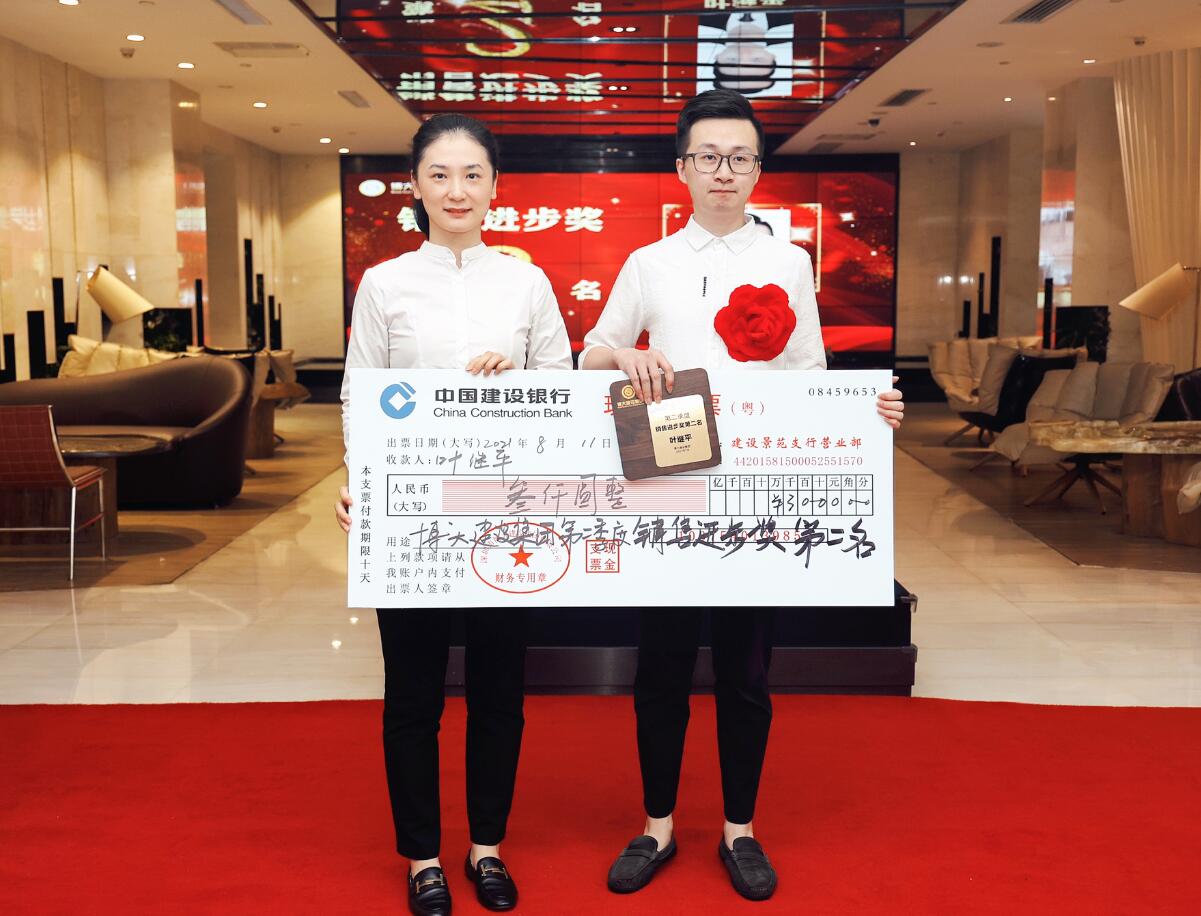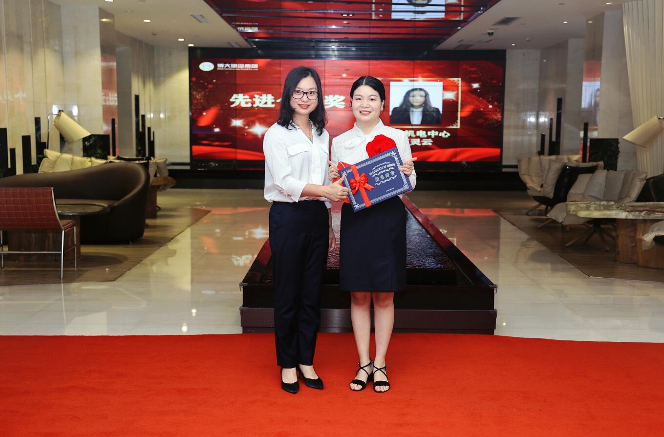 集團董事、常務副總裁沈雁飛為銷售進步獎獲得者彭麗麗頒獎