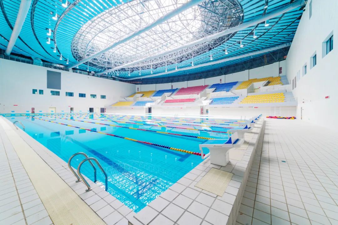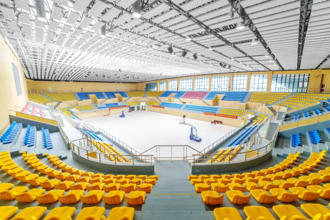 博大負責的施工區(qū)域涵蓋體育館、運動場、游泳館、人防地下室,聲學吸音等全部裝飾工程。其中運動場東、西看臺兩側(cè)均為弧形造型,現(xiàn)場工期緊、任務重,交叉作業(yè)多,協(xié)調(diào)難度大,配合要求高。